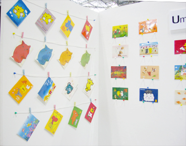 ポストカードに穴が開かないように挟むようにディスプレイしています。