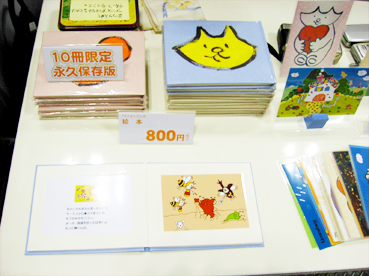 机の上には初の絵本作品。表紙は手描きで表にネコ裏にねずみを描いています。